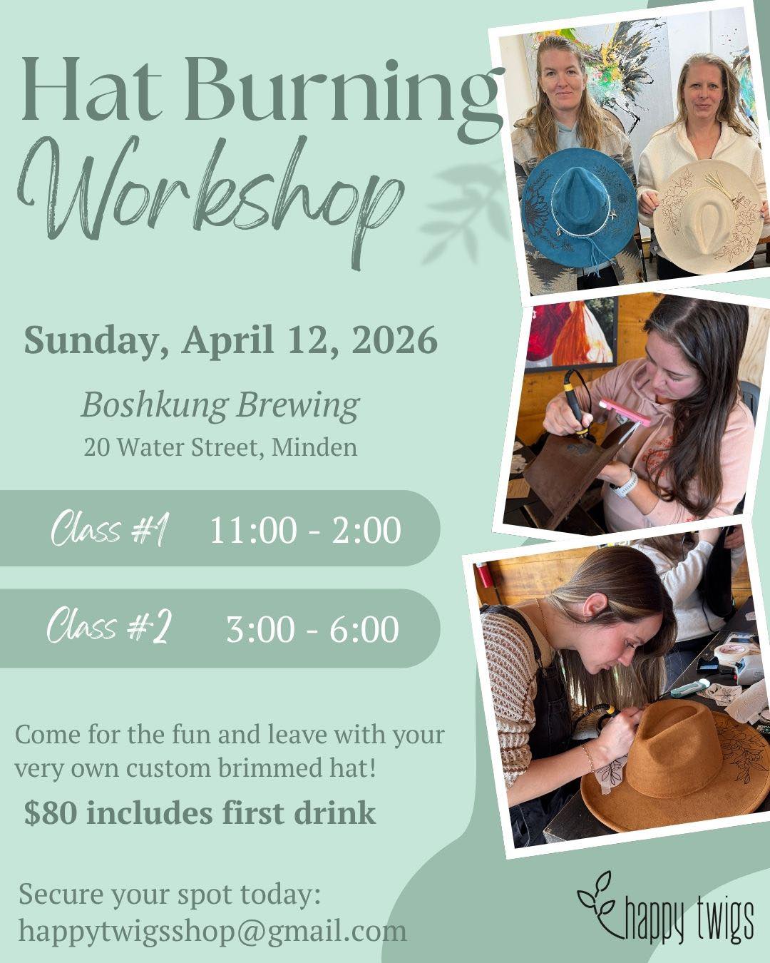 Join us on Sunday, April 12th for a Hat Burning Workshop β a hands-on, creative experience where youβll design and craft your own custom hat from start to finish.