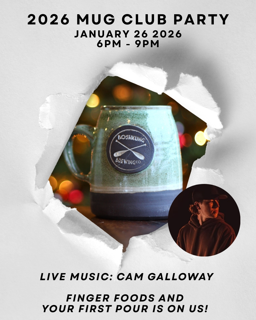We’re hosting a Mug Club Party on January 26th, 2026, from 6 PM to 9 PM at Boshkung Social. The evening will feature: